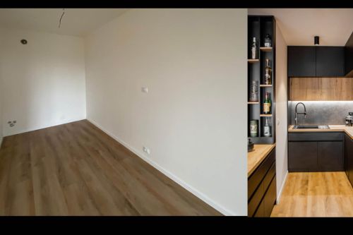 Konečným výstupem naší práce je zrealizovaný interiér nebo stavba. K tomuto cíli vede ale hodně dlouhá cesta, někdy trvá i několik let, u interiérů běžně několik měsíců. Cestu jsme pro Vás zkrátili a vytvořili ukázku fotografií interiéru v moment, kdy jsme do něj poprvé vstoupili a v moment, kdy jsme ho opouštěli.