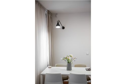 Světla jsou v interiéru vybrána co nejjednodušší, ale výrazné antracitové barvy. Součástí nábytků na míru jsou LED pásky, které podsvětlují nebo naopak zvýrazňují důležité tvary.